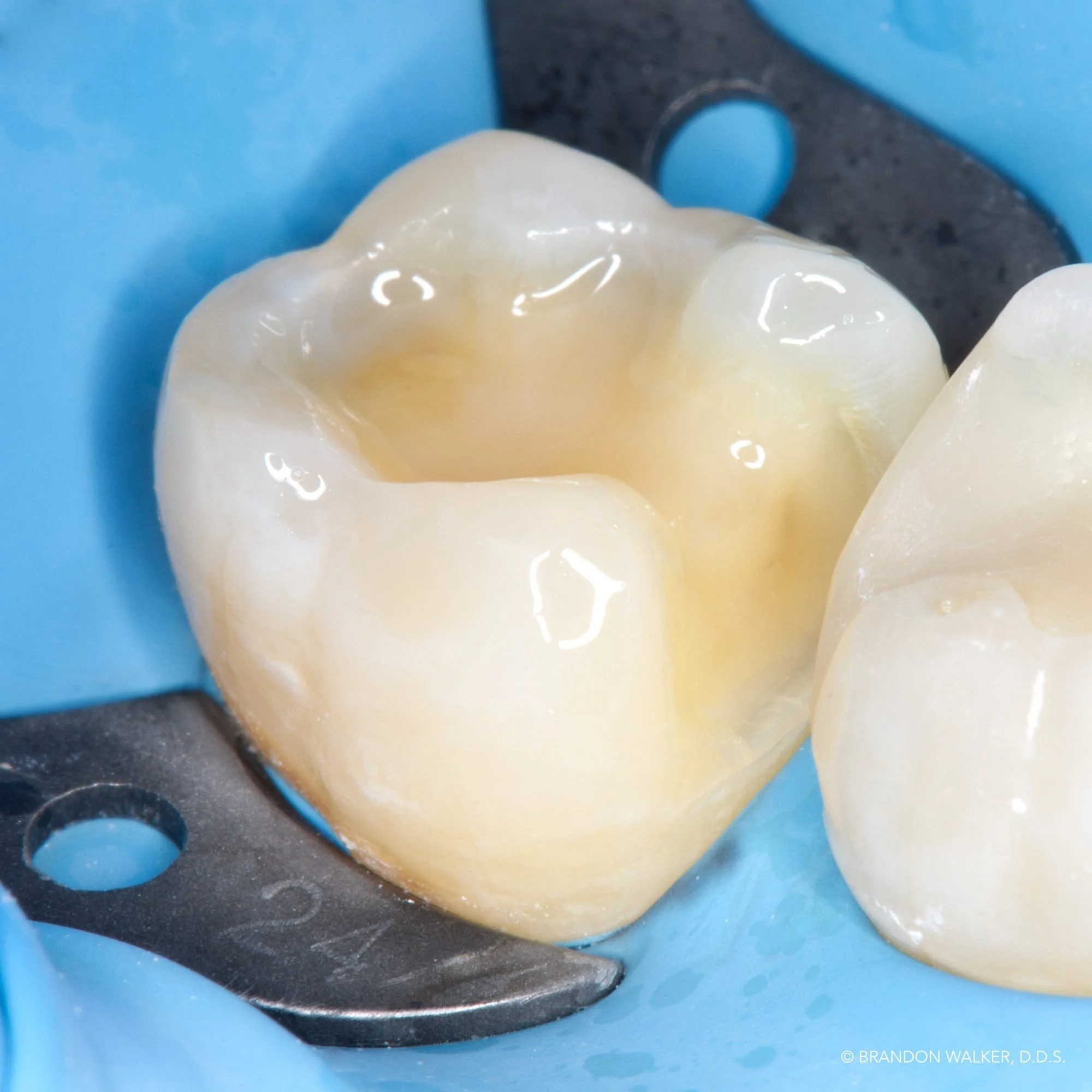One misconception about adhesive dentistry is that enamel bonds are stronger than dentin. However, given adequate time and proper isolation, a two-step, gold-standard bonding system such as Kuraray’s SE Bond, SE Bond 2, or SE Protect can produce a bond to dentin up to twice the strength as the bond to enamel (Van Meerbeek et al, 2003). Respecting time requirements for bond maturation, regardless of the bonding system used, helps mitigate leakage, eliminate post-operative sensitivity without the need for additional desensitizing products (Brannstrom, 1986), and enhance bond performance.